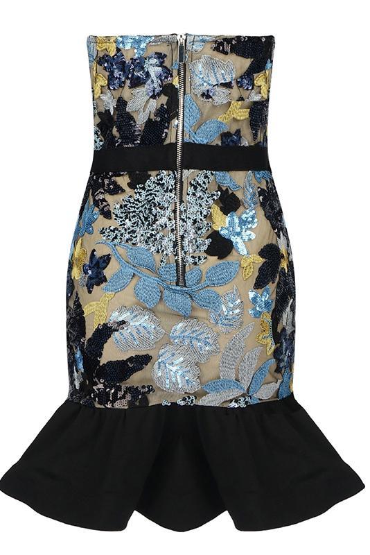 The Liwisy Off Shoulder Sequin Dress is always a stunner! Sheer mesh. embellished with floral embroidery and shiny sequins. darted bodice. and curve-hugging bodycon mini skirt. It's time to take your style to new heights in this party dress.
